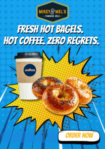Stop by Mikey & Mel’s Deli near Farragut Square for hot bagels, hot coffee, and a breakfast that actually delivers.