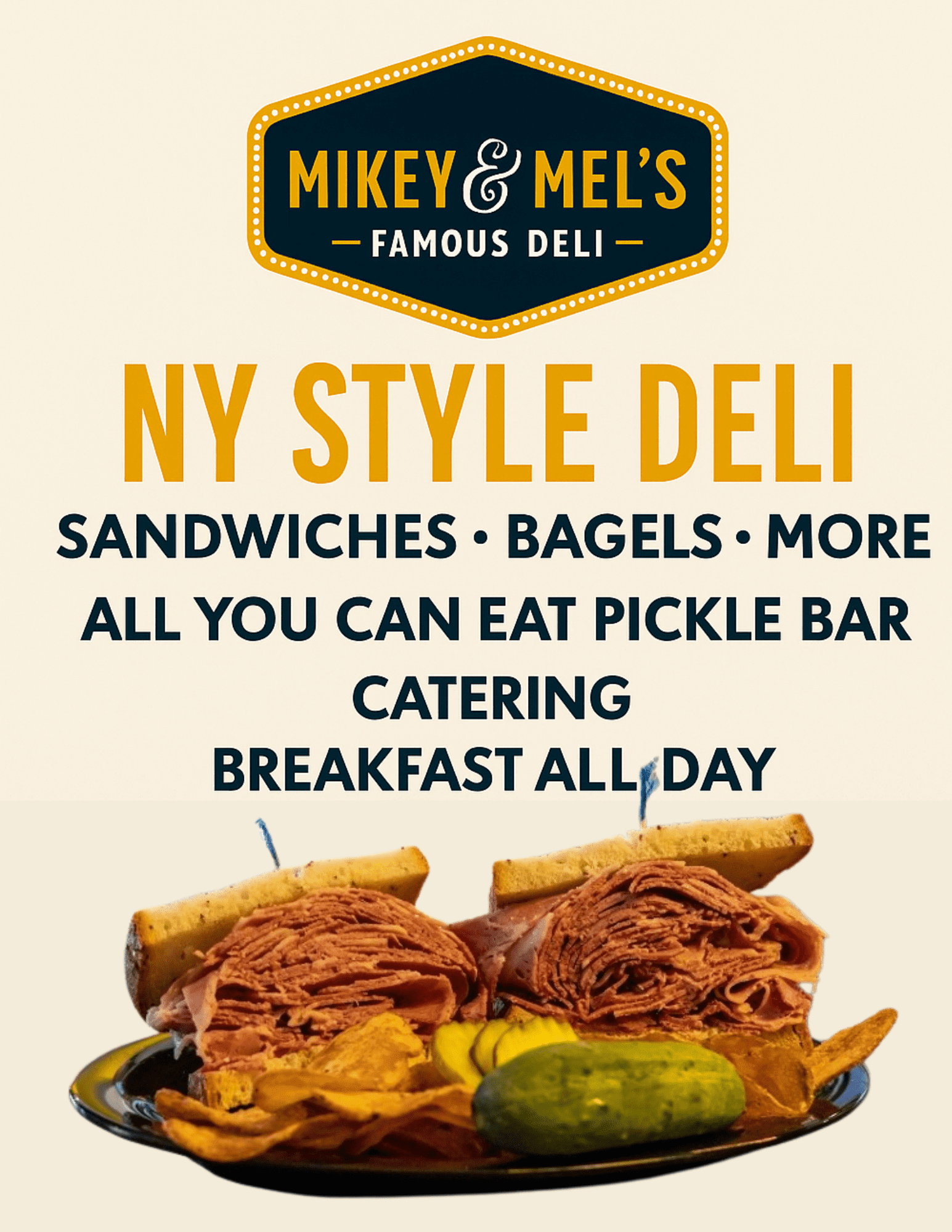 Welcome to Mikey & Mel’s Deli, a New York-style spot with deep roots and overstuffed sandwiches smack in the heart of downtown Washington, DC. We’re the kind of deli where the bacon is crispy, the bagels are baked fresh daily, and the corned beef is stacked higher than your to-do list.