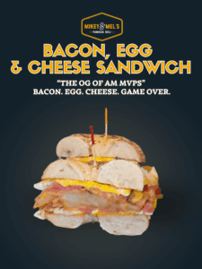 Get yourself a real breakfast sandwich—only at Mikey & Mel’s. 🥯🔥