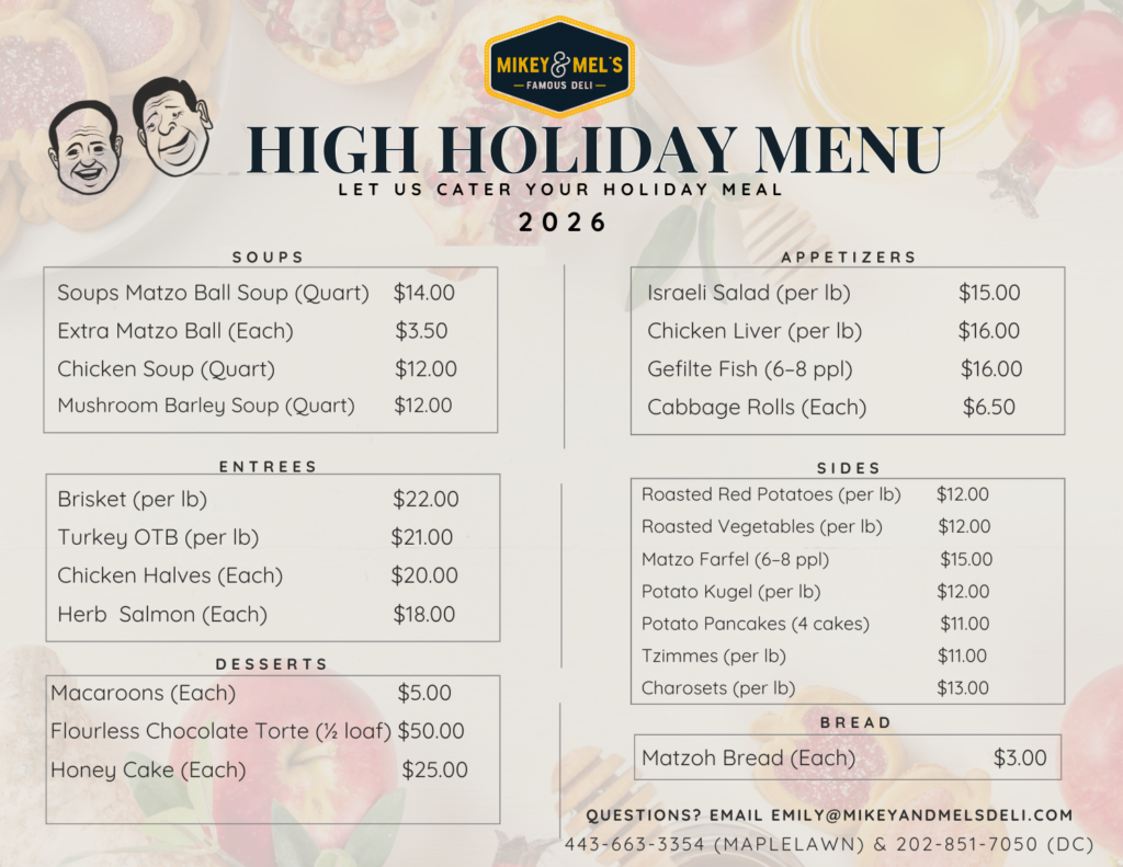 HIGH HOLIDAY MENU